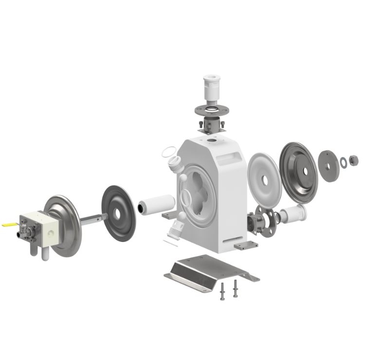 The Minichem is machined from one solid block of PTFE; a unique patented concept based on Flotronic’s existing One Nut Air-Operated Double-Diaphragm design. A key benefit of the ‘One-Block’ design is that it avoids the need for separate manifolds. This means no manifold seals and therefore no potential leak paths.