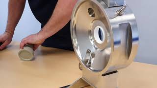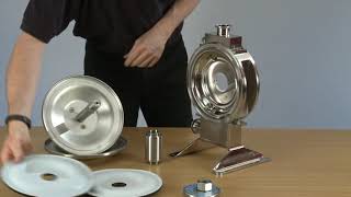 Watch VideoIn This example the PTFE Snap Fit Divider seal is being inserted into A Sanitary Style 316L pump with 12" Diaphragms - insertion technique is the same for all Snap Fit Divider Seals - Special Tool supplied with pumps.