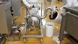 Watch VideoPumping warm chocolate containing whole almonds - The Flotronic Good Food Pump is the perfect Air-Operated Diaphragm Pump for this application.