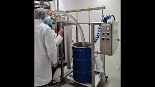 Watch VideoVideo of emptying concentrated tomato puree from 240 Kg taper drum. Sanitary Air-Operated Double-Diaphragm pump mounted in our barrel unloading system with inflatable seal, ensures easy Strip-down and clean, and can be cleaned in place if required.