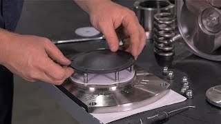 Watch VideoExample shown is a Standard PTFE divider seal being fitted to a Stainless Slimline pump with 10" Diaphragms - same method on most of the Flotronic diaphragm pump range, including the 500 series Plastic and the Minichem / Chemflo PTFE pump ranges.