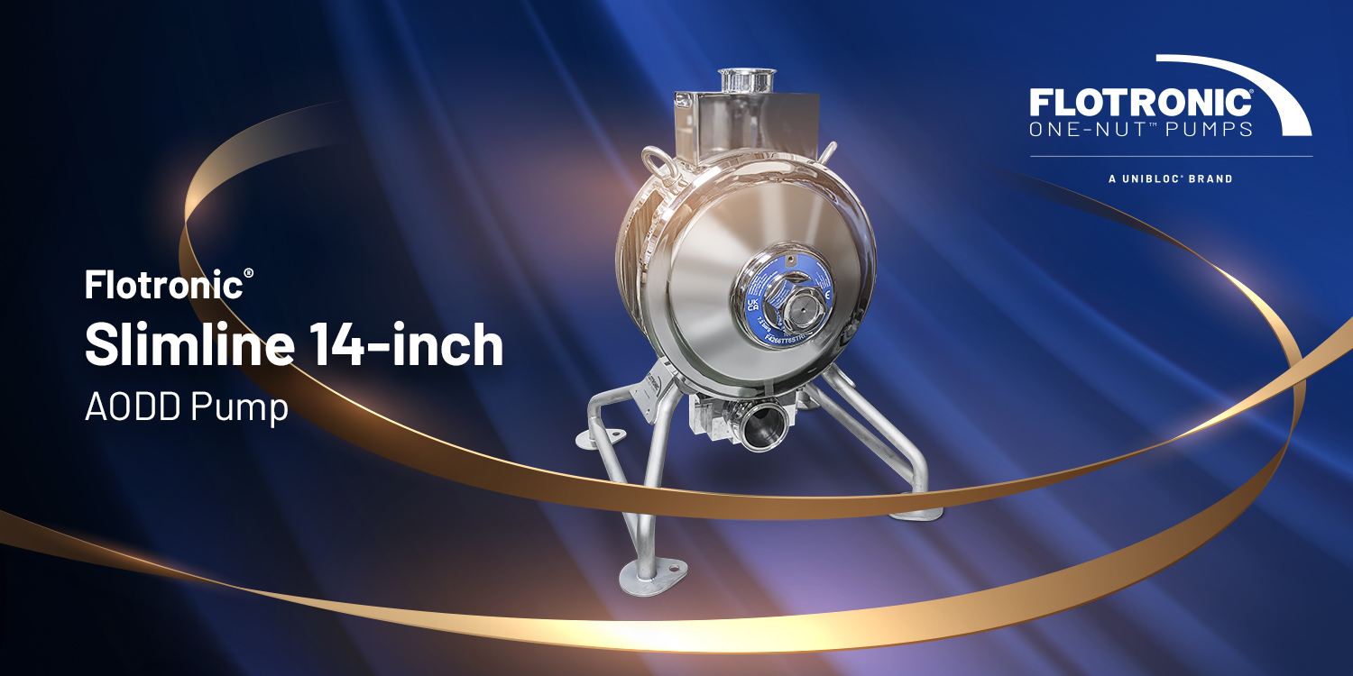 Unibloc® Hygienic Technologies raises the bar with its latest product introduction within the Flotronic® Slimline series, a 14-inch AODD pump that marks the first of its size within the AODD pump style that can accommodate a Clean-in-Place (CIP) processes. Other features make it a game changer for customers that need a larger pump capacity.