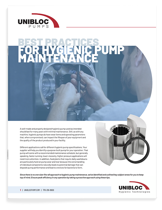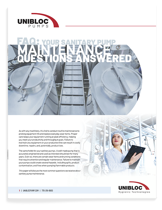 Download White PaperUnibloc® Hygienic Technologies (UHT) has spent decades studying and designing solutions for the world’s most demanding pump processing applications. UHT experts know what keeps plant managers up at night and what’s needed to fight the daily battle against downtime and hygienic compliance.